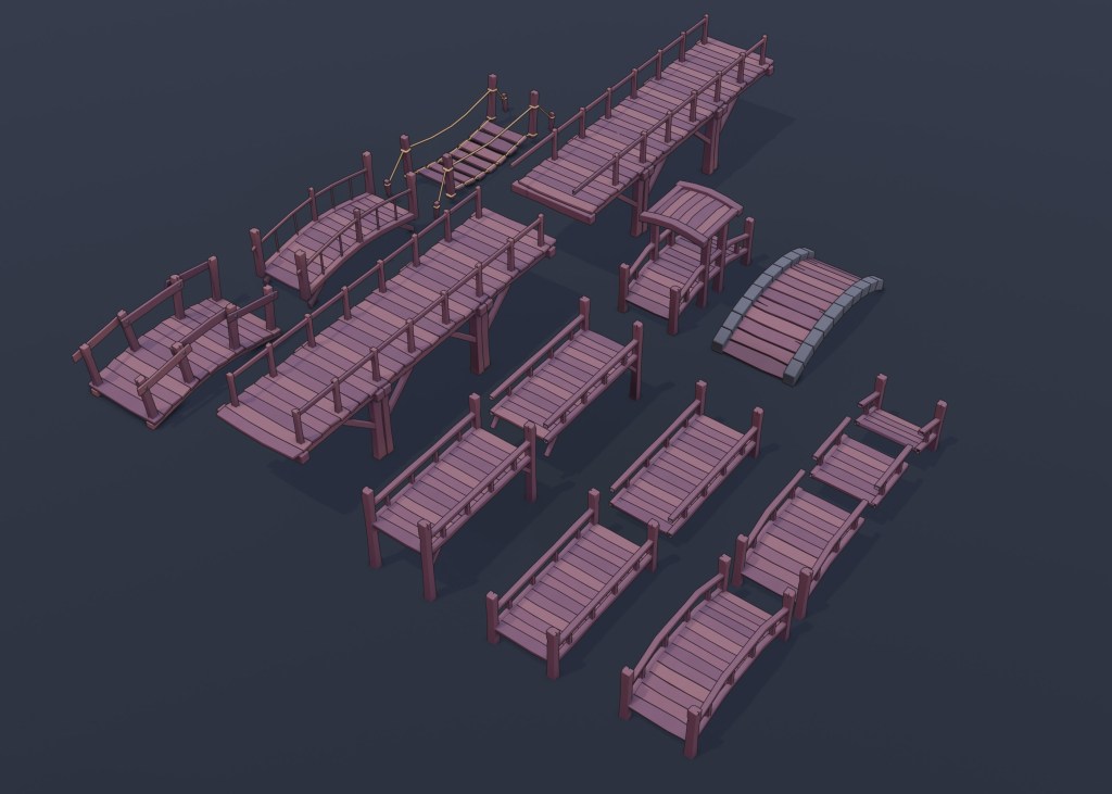 Architecture Wooden Bridges Pack 01 Date: February 13, 2021Author: Katsukagi 1 Comment Supporters on Patreon will have access to these models plus the modular ones and access to the .blend file. Bridges models plus the modular ones. Click here to support us and access them and all the other 3D models Files: .FBX Color View the models and Download View the models on SketchFab Share this: Click to share on X (Opens in new window) X Click to share on Facebook (Opens in new window) Facebook Like Loading...