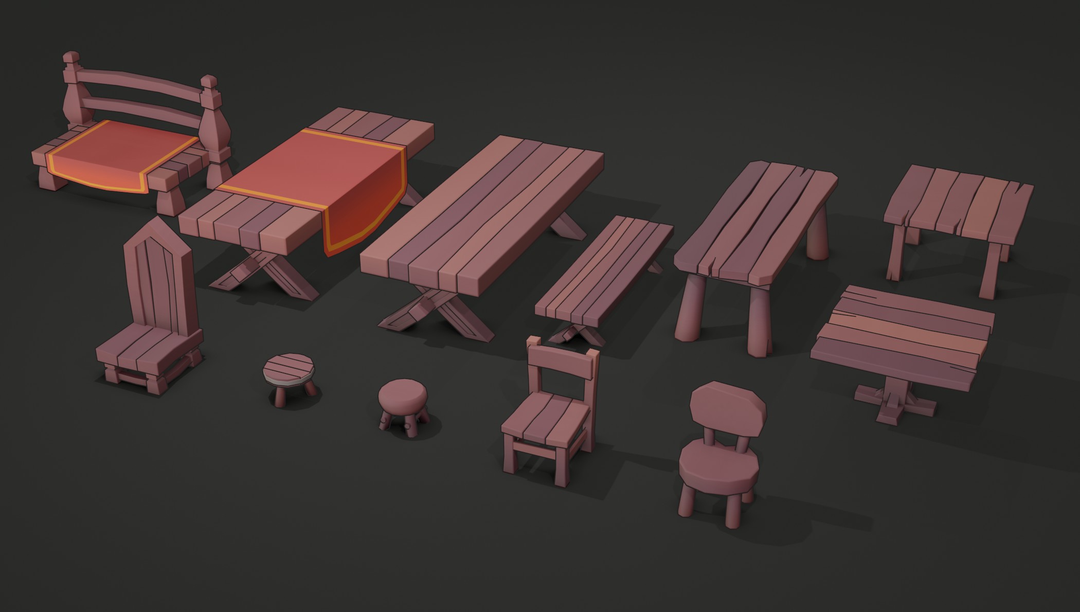 Furniture, Packs Wooden Tables and Chairs Pack 01 Date: February 18, 2021Author: Katsukagi 0 Comments Supporters on Patreon will have access to these models plus the ability to change colors of the cloths and access to the .blend file. Fantasy wooden tables and chairs. Click here to support us and access them and all the other 3D models Files: .FBX Color View the models and Download View the models on SketchFab Share this: Click to share on X (Opens in new window) X Click to share on Facebook (Opens in new window) Facebook Like Loading...